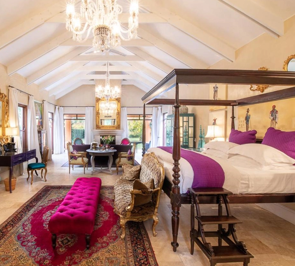 Art & Interiors:Each suite is uniquely decorated with curated art pieces, rich fabrics, and bespoke furnishings for a bold, eclectic charm.
