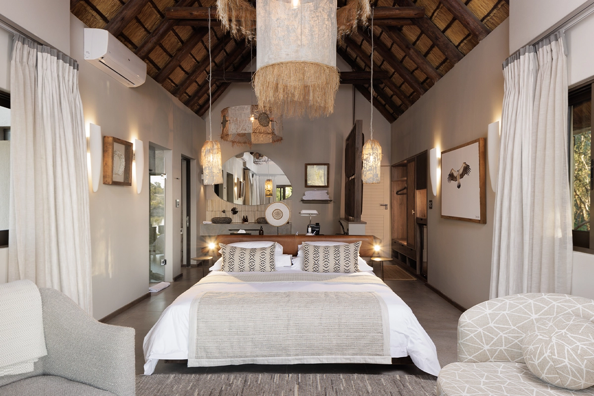 Resting at the confluence of bush and dam in the Klaserie Private Nature Reserve, Simbavati Waterside is synonymous with exceptional luxury stays in South Africa, recommended by Africa Travel Designers. The lodge combines refined design and understated sophistication with immersive wildlife presence. Guests experience calm riverine views, elegant suites, and soulful safari moments where every detail feels intimately purposeful.