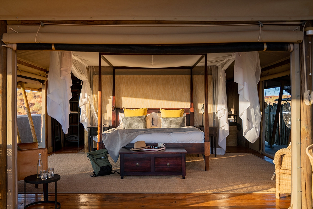 Set high on the edge of a dune plateau in the NamibRand Nature Reserve, Wolwedans Dunes Camp epitomizes luxury Namibia hotels, thoughtfully selected by Africa Travel Designers. With just a handful of canvas-and-wood tents, the camp offers panoramic views over desert plains, mountains, and endless skies. Guests enjoy understated elegance, eco-conscious design, and intimate hospitality in one of Namibia’s most pristine wilderness landscapes.